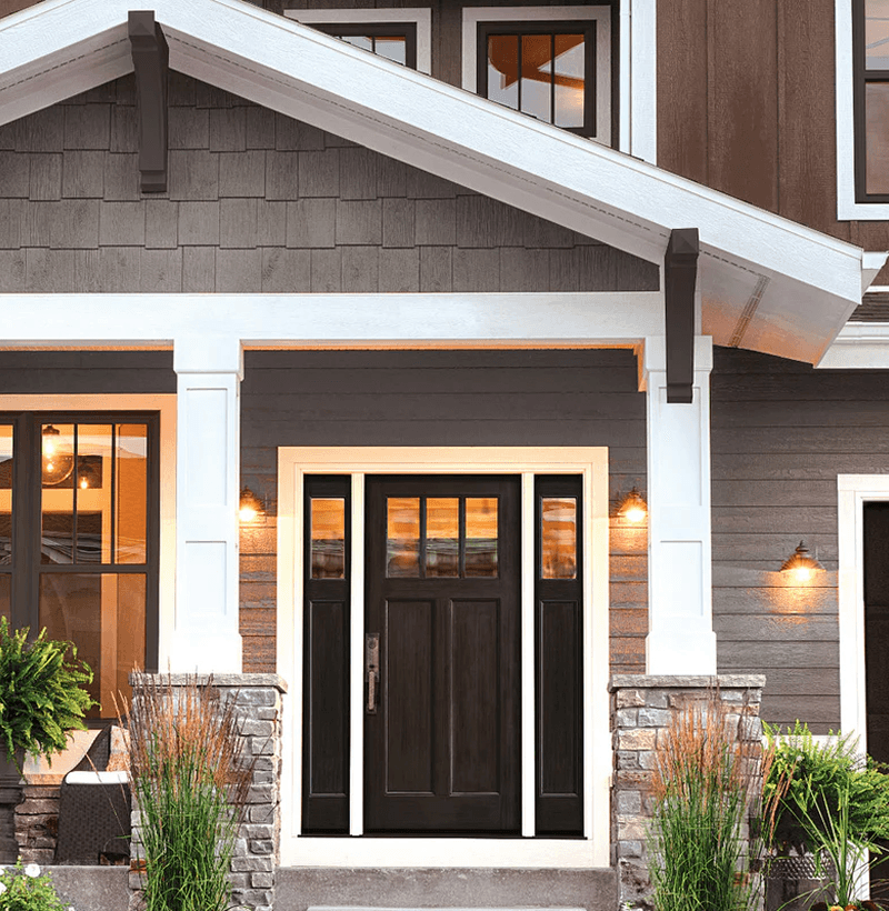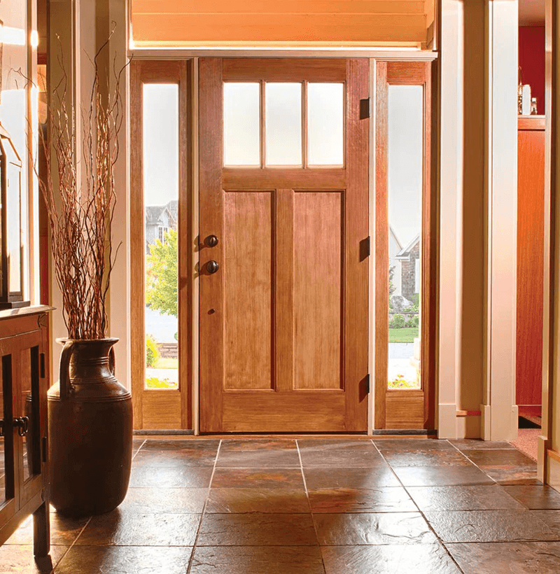 3 Lite Craftsman Style Fir Grain Fiberglass Door With Matching 5 Lite Sidelites