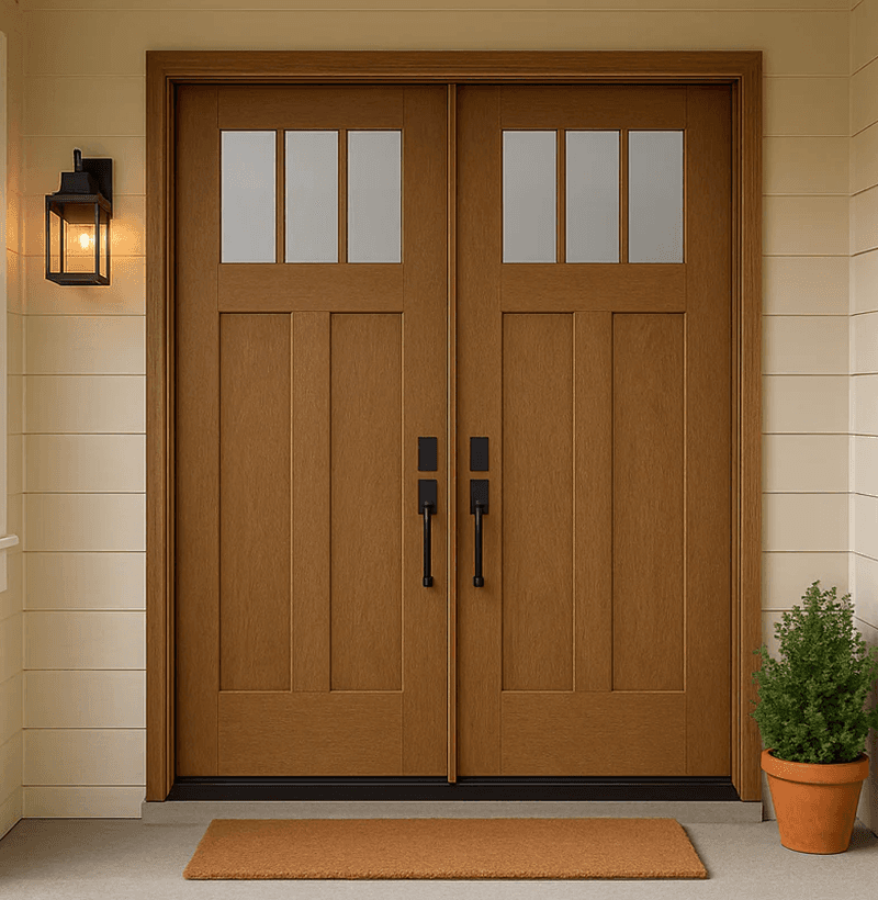 3 Lite Craftsman Style Fir Grain Fiberglass Double Door
