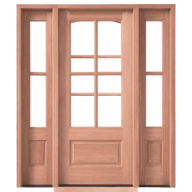 4-Lite 1-Panel Mahogany TDL Entry Door & 14" 2 Lite 1-Panel Sidelites (Insulated, Beveled Glass)