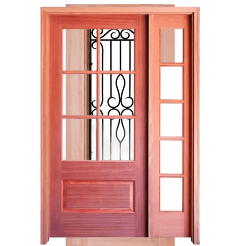 Prehung 6 Lite 1 Panel Mahogany TDL Entry Door and a 14" 5-Lite Sidelite with Insulated, Beveled Glass